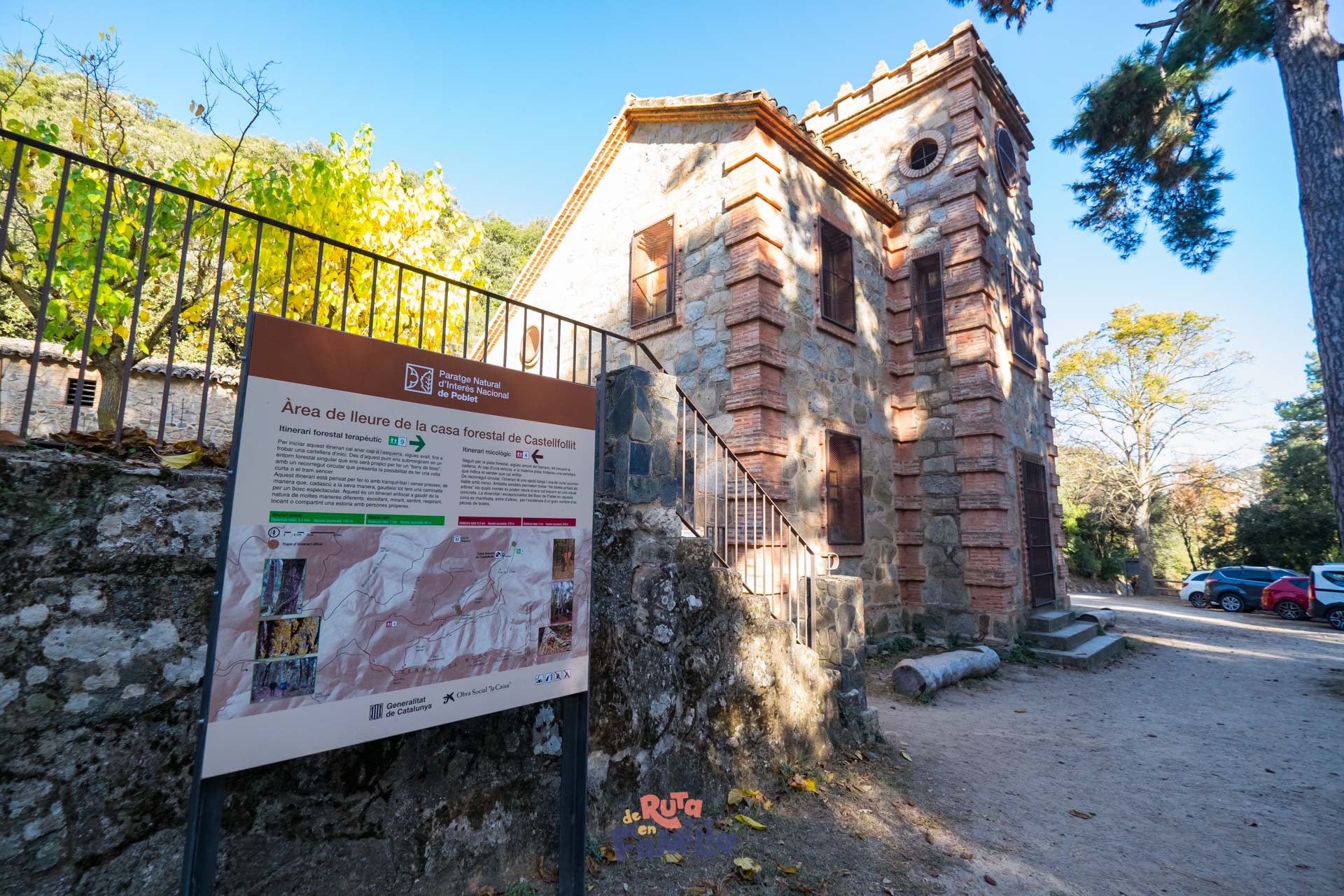 El punt dinici de les dues rutes pel Bosc Pintat de Poblet és la casa forestal de Castellfollit. Fins a aquesta construcció d’inicis del segle XX, que antigament feien servir els enginyers i els treballadors que treballaven en l’adequació del bosc, es pot arribar amb cotxe. Això sí, cal tenir en compte que no hi ha gaire espai per aparcar i que les places s’omplen amb rapidesa, especialment els caps de setmana, així que el millor és arribar-hi d’hora.