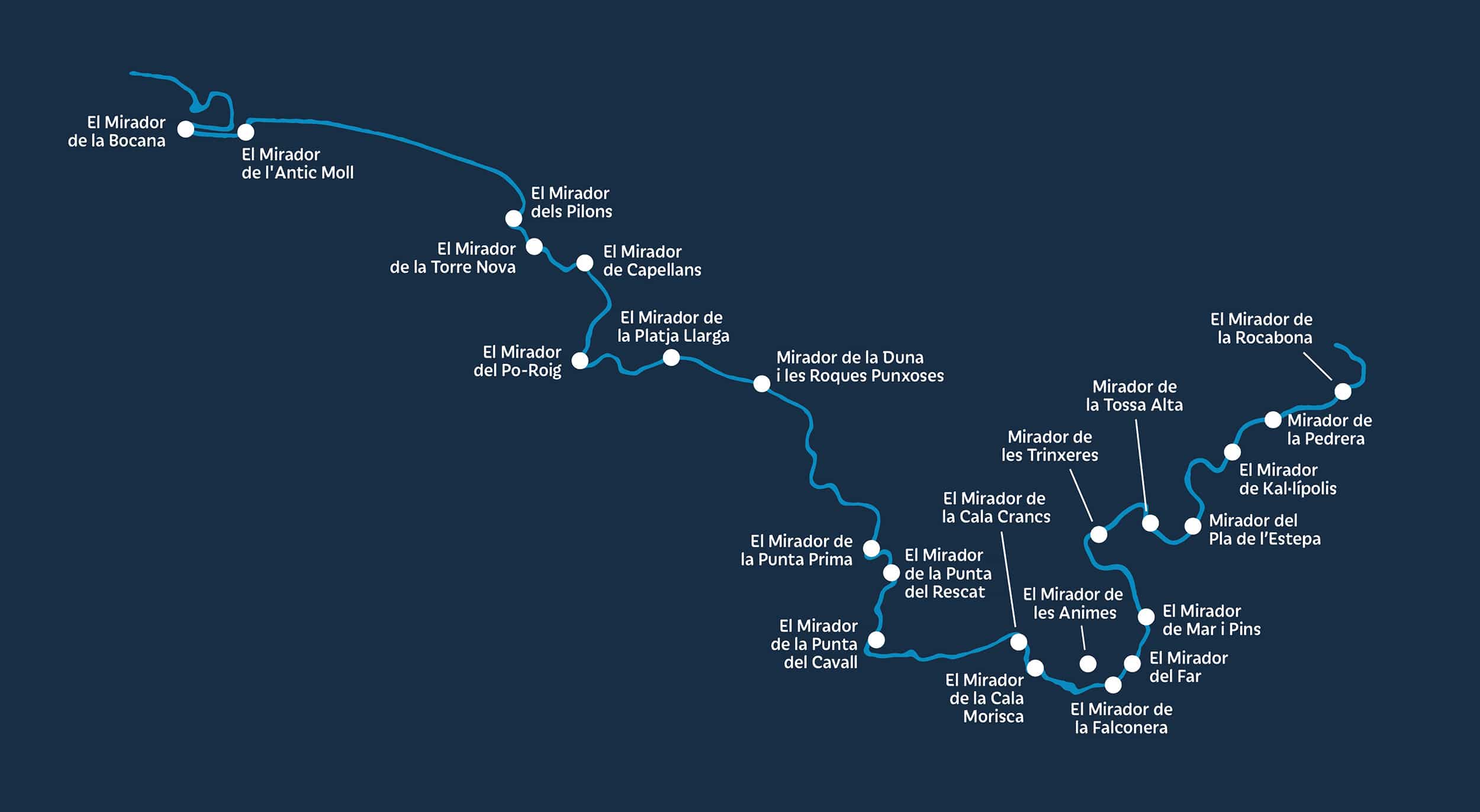 La ruta on anireu trobant els miradors comença entre les platges de Ponent i de Llevant, a la frontera amb Cambrils, i s’allarga fins a la zona de la Pedrera, tocant a la Pineda, on podeu acabar o també iniciar la ruta. La recorregut passa per diversos espais verds que us anireu trobant al llarg del litoral de la capital de la Costa Daurada. Uns miradors que també es troben mentre un va recorrent el camí de ronda Salou, anant d’una cala a una altra.