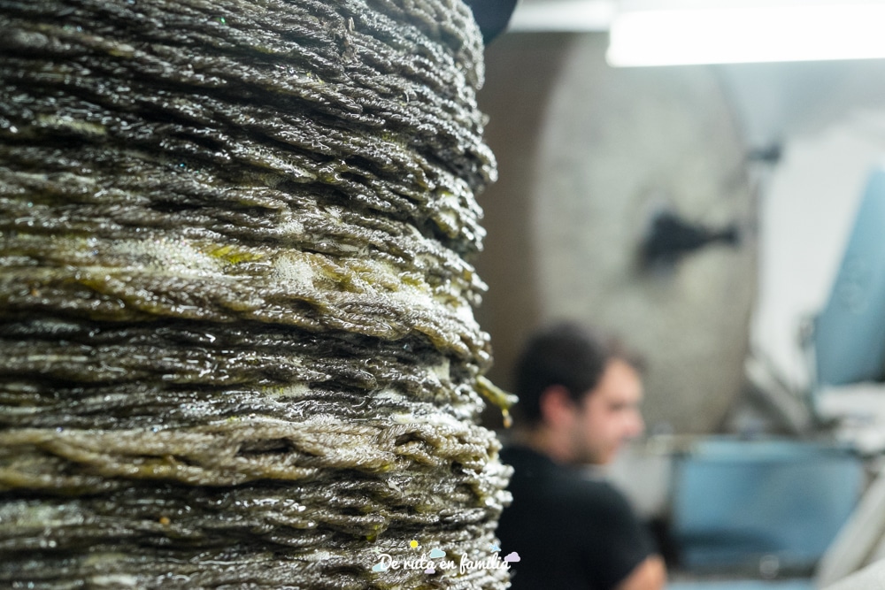 Aquel procedimiento que nos habían explicado por la mañana a la cooperativa Agrícola de Riudecanyes pudimos verlo con nuestros propios ojos. Unas grandes piedras eran las encargadas de aplastar las aceitunas para hacer la pasta que, a continuación, se coloca en unas mallas que se prensan y es de donde sale el aceite.