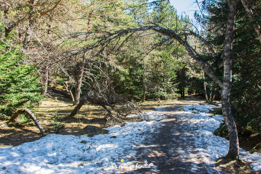 El primer tramo de bosque es muy bonito y asequible para todos, pero la última media hora de camino hay algunas subidas considerables. En este último tramo nos encontramos bastante nieve y eso dificultó un poco el ascenso ya que, aunque estaba pisada, había que ir con cuidado de no resbalar.