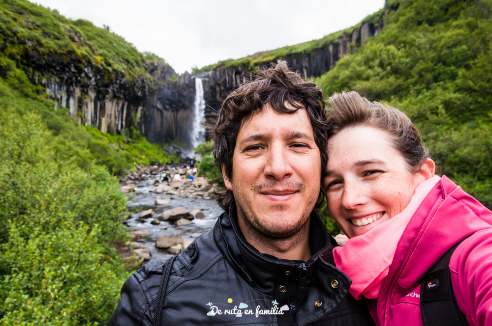 Visto que el tiempo aguantaba un poco decidimos seguir uno de los senderos que hay marcados en el Parque y llegar hasta la cascada Svartifoss, que está rodeada por columnas basálticas de color negro de origen volcánico. Llegar es un paseo de una media hora (hace algo de subida) que vale la pena.