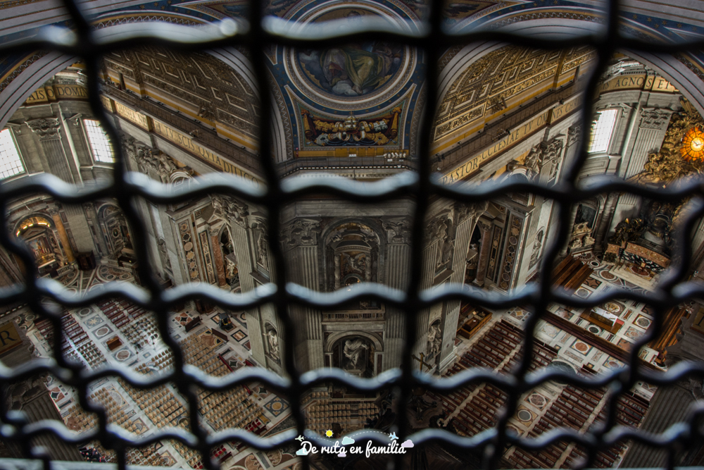 Una vez descubiertas todas las perspectivas desde la cúpula, el último paso es entrar en la Basílica donde, entre otras joyas, no debéis dejar de contemplar La Piedad de Miguel Angel, el baldaquino de Bernini o las monumentales tumbas papales que hay repartidas por toda la Basílica y también en las grutas vaticanas.
