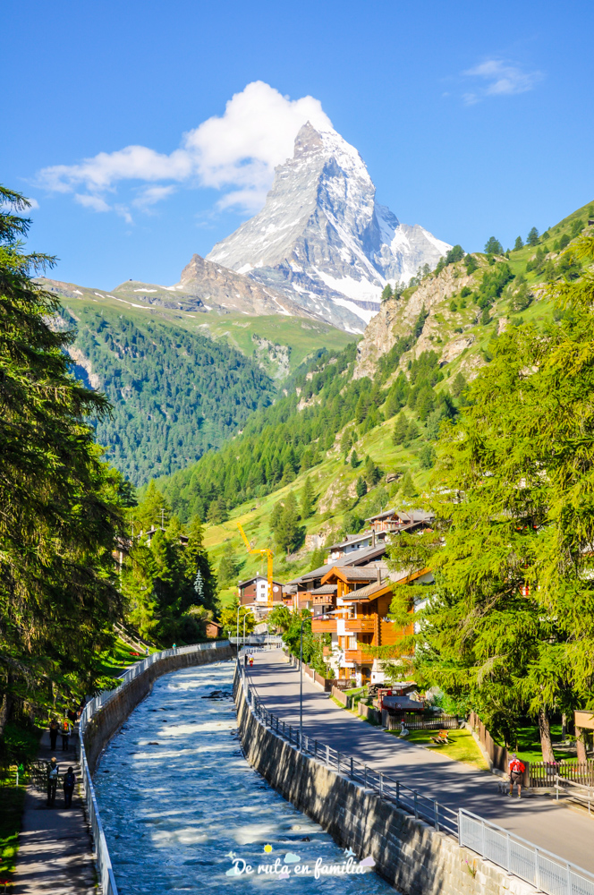 Zermatt es un pequeño pueblo situado en el sur de Suiza que tiene un encanto especial y es que está vigilado por una de las montañas más espectaculares del mundo: el Matterhorn (en italiano Monte Cervino).
